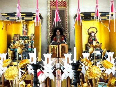 お講という、信者さんの集まったグループが本山へのお参りなどをしていて、御分体をお寺に持ってきたと伝えられております。